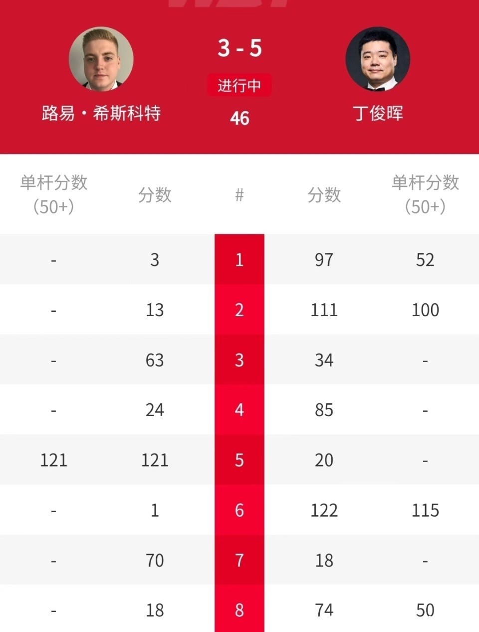 北京时辰10月10日音讯,2025年斯诺克西安大奖赛不息进行。第三轮的一场焦点比赛中,“中国一哥”丁俊晖对阵路易-希斯科特,他轰出两杆破百和两杆50+,总比分5-3完胜晋级。此前,丁俊晖以2个5-1的比分获得两连胜。